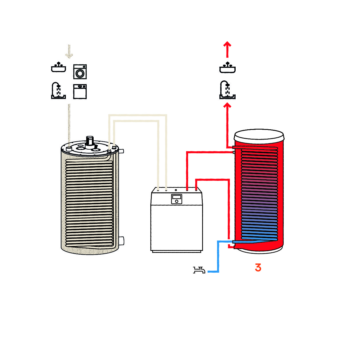 3 The heat is now, as is common in multi-story residential buildings, provided to the apartments via a buffer tank for hot drinking water.